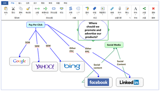 在该软件中,使用强大的新功能形象化工作流程,用于规划、决策和头脑风暴,通过直观的新用户界面创建智能流程图和概念导图图表,拖放主题形状、判定主题和行注释,让创建流程图和其他图表变得更简单。