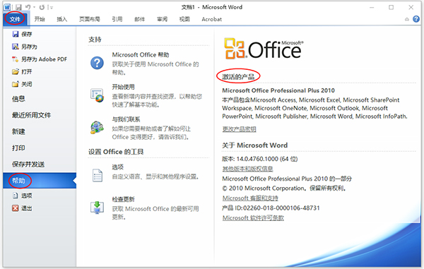 8、打开软件office2010,在文件,帮助里,可以看到需要激活产品