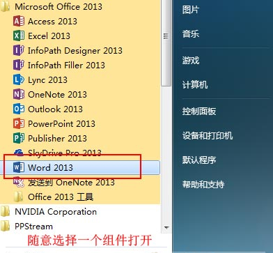 8、下面是激活office2013的操作步骤,开始菜单随意选择一个组件打开,如word2013;