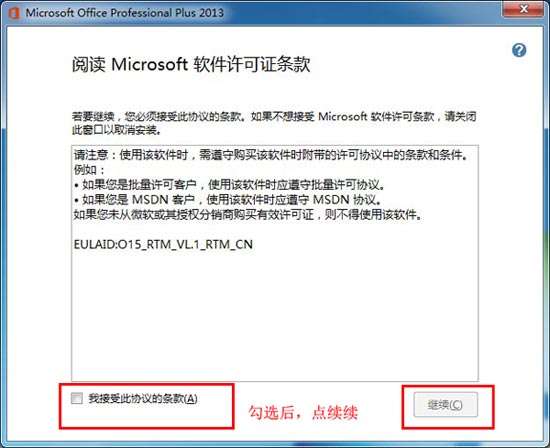 5、出现office2013中文破解版的安装界面,选择接受协议;