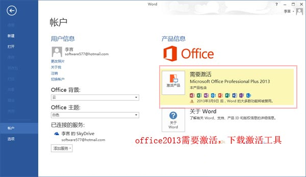 11、再次打开word2013,软件已经显示为“激活的产品”。