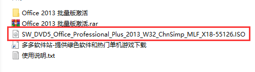 1、下载解压得到SW_DVD5_Office_Professional_Plus_2013_W32_ChnSimp_MLF_X18-55126.ISO文件;