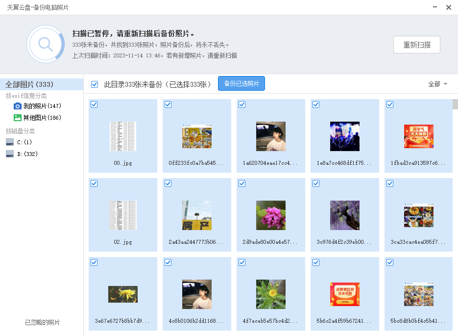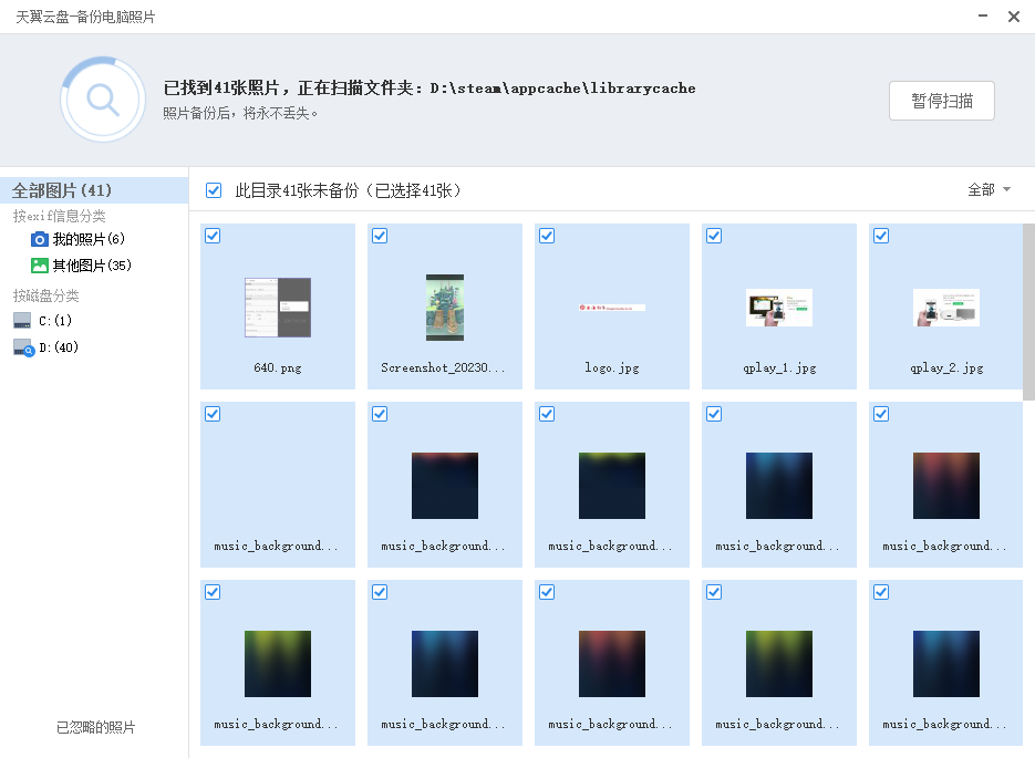 天翼云盘电脑版能快速搜寻您电脑上的照片,让您便捷地备份所有美图、照片,不遗漏任何一个精彩照片。