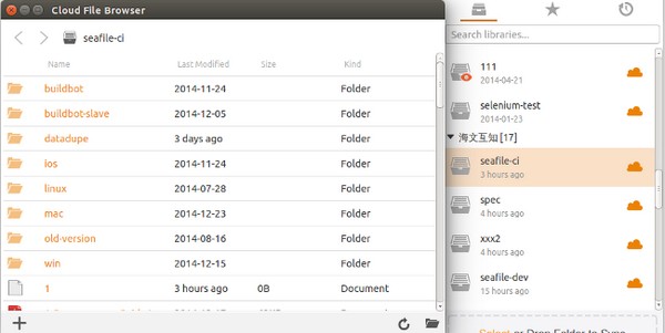在一些场合下,你希望在不同步文件的情况下直接编辑服务器上文件。Seafile 客户端为此提供了“云端文件浏览器”。双击尚未同步到本地的资料库,即可打开云端文件浏览器,对云端的文件进行操作。