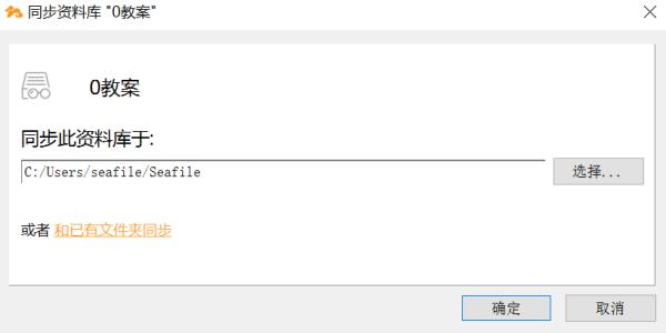 2、点击“同步该资料库”后有两种方式可以选择,第一种,你可以在弹框中选择一个目录, Seafile 将在这个目录下创建一个新的文件夹,这个文件夹的名字就是你将要同步的资料库的名称。