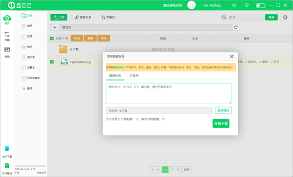 大容量存储:盘它云PC客户端为用户提供了充足的存储空间,满足用户日常文件存储的需求。同时,用户还可以根据自己的需求选择不同等级的付费套餐,灵活扩展存储容量。