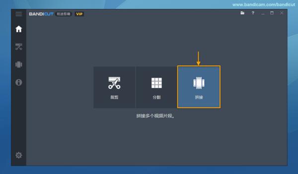 1、打开 Bandicut,点击 “拼接”;
