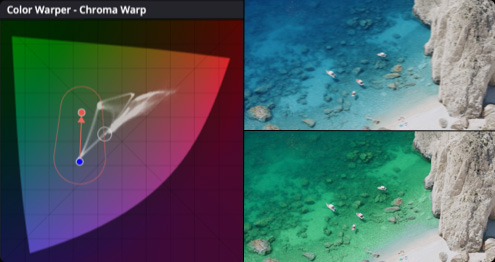 色度扭曲可让您在检视器里以单个动作来直观地调整色彩和饱和度。笔划控制可单方向移动色彩,而点到点模式则可以隔离出区域从而进行更精确的色相调整。您可以添加点来隔离出不想要受影响的区域。