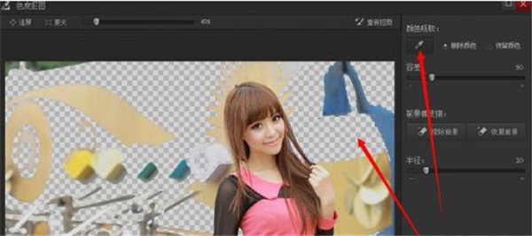 色度抠图功能适合保留部分和删除部分颜色没有重复的图片