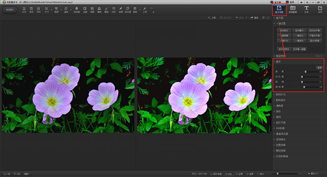 如果自动白平衡的效果还不能满足你的需求,或者你想要更细致地调整照片的色彩,那么可以尝试使用“基本”选项中的手动调色功能。