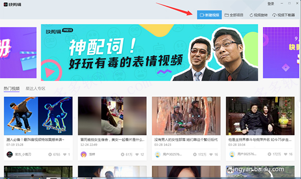 1、打开快剪辑软件,点击右上角【新建项目】按钮