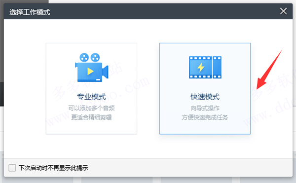 2、弹出【选择工作模式】窗口,这里单击【快速模式】