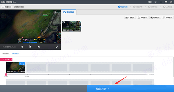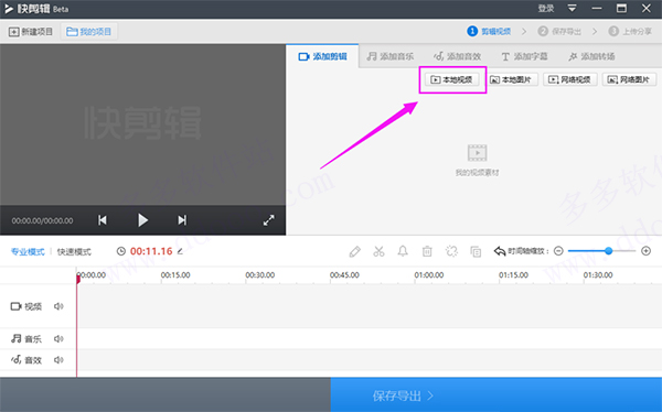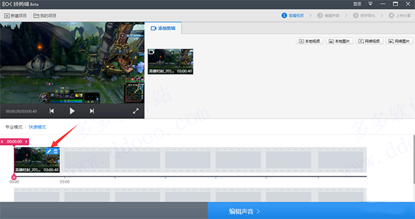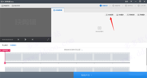 3、弹出编辑视频界面,单击添加剪辑中【本地视频】按钮