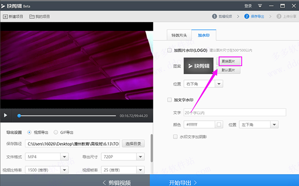 6、如果你想换成自己的水印,你可以在右边选择更换图片,如图所示