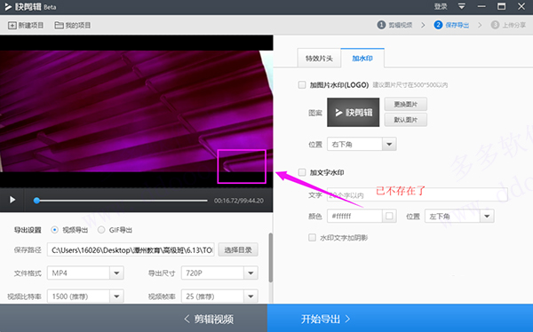 5、你会发现播放视频时,在屏幕右下方没有快剪辑水印了,如果在勾选,又开始显示了,如图所示