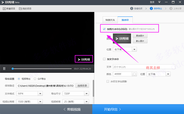 快剪辑怎么去水印?
