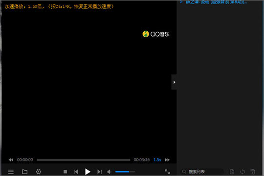5、刚刚在设置中将加速播放调整为0.5的速度,回到播放窗口点击一次加速播放的箭头可以看到加速播放变为1.5倍了;