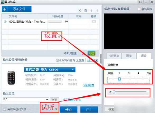 4、设置画面大小以及声音;