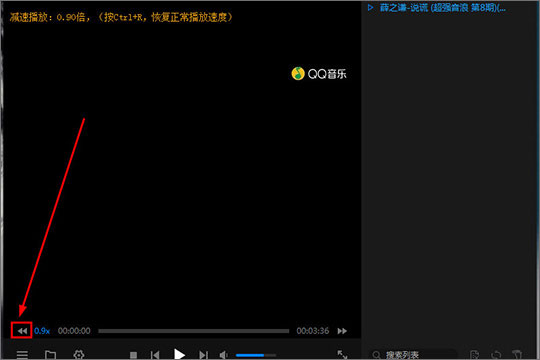 3、如果用户想要减速播放,则需要点击左下方的“←”箭头选项进行减速,点击一下也将会出现减速播放的倍速提示,和加速播放是同样的道理;不想要加速播放或减速播放了怎么办?直接点击下方各个箭头出现的对应数字,点击一次即可恢复到正常的播放速度,你也可以直接按“Ctrl+R”快捷键进行恢复;