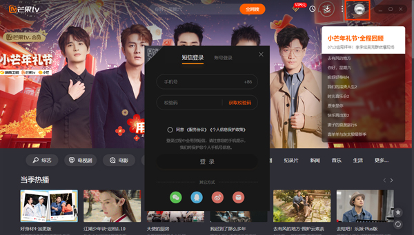 1、打开芒果tv,首先登录账号,可QQ、微信、手机号登录;