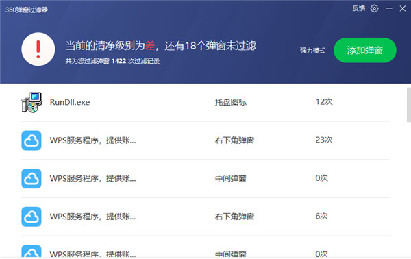 3、打开弹窗过滤界面后,用户可以直观的看到没有过滤的弹窗。