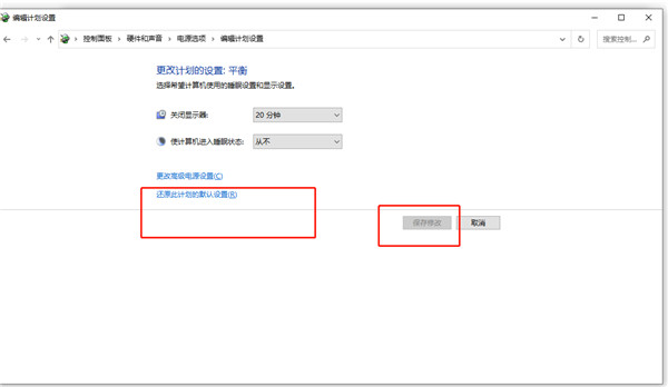 3、单击“恢复此计划的默认设置”,点击保存修改