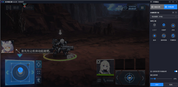 使用范例:将右边左摇杆功能拖动到控制角色移动的方向键上,然后将左摇杆缩放到与游戏方向键重叠大小。
