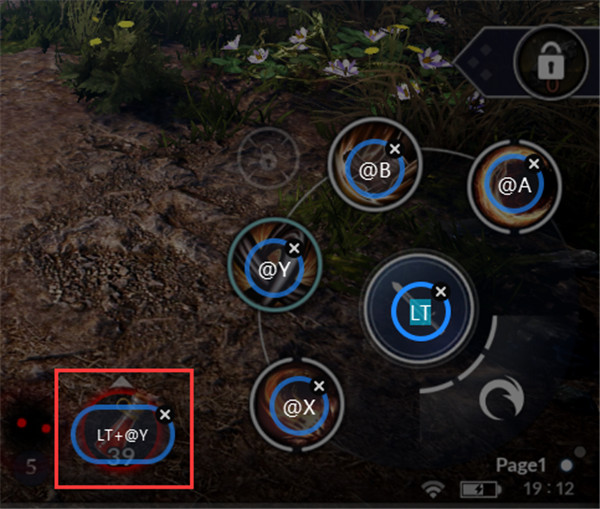 组合键范例:在游戏画面需要设定手把按键操作地方;使用滑鼠点选位置,然后在手把上同时按下两个需要被组合起来的键位,例如:在药水位置上设定LT+Y键,手把上同时按下LT+Y键就会执行喝药水动作。