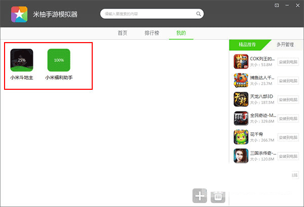 2、点击首页,用户可以下载手机游戏并安装在电脑上;