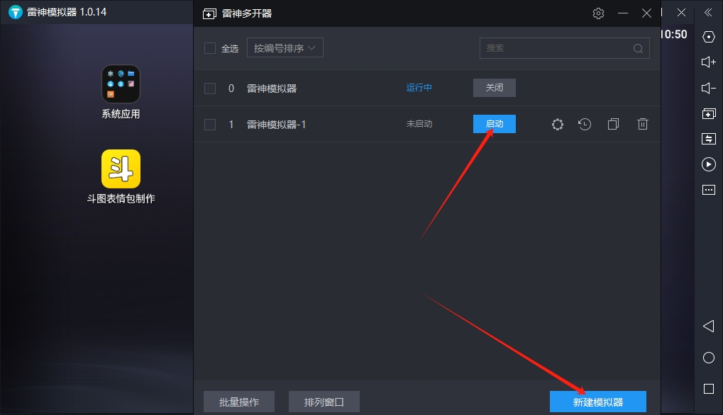 多开方案加入批量操作功能,实现多开,关闭模拟器,自动排列窗口,批量新建,复制等功能。几十开甚至上百开的用户都能管理模拟器。