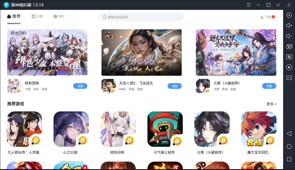 雷神模拟器是一款强大的安卓模拟器,支持在电脑上运行各种安卓应用,比如游戏、社交软件等,兼容性很强,还能轻松运行高清高性能手游。它不仅可以用键盘操作,还能连接手柄自定义按键,玩起来更方便。另外,多开批量操作功能也很强大,可以同时运行多个模拟器窗口,管理起来特别灵活。