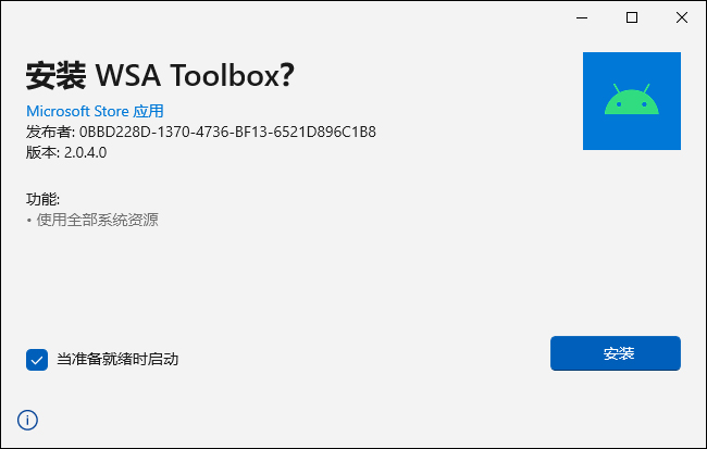 支持自动调用ADB连接安卓子系统,支持快速打开子系统设置、安卓系统设置和应用商店页面。