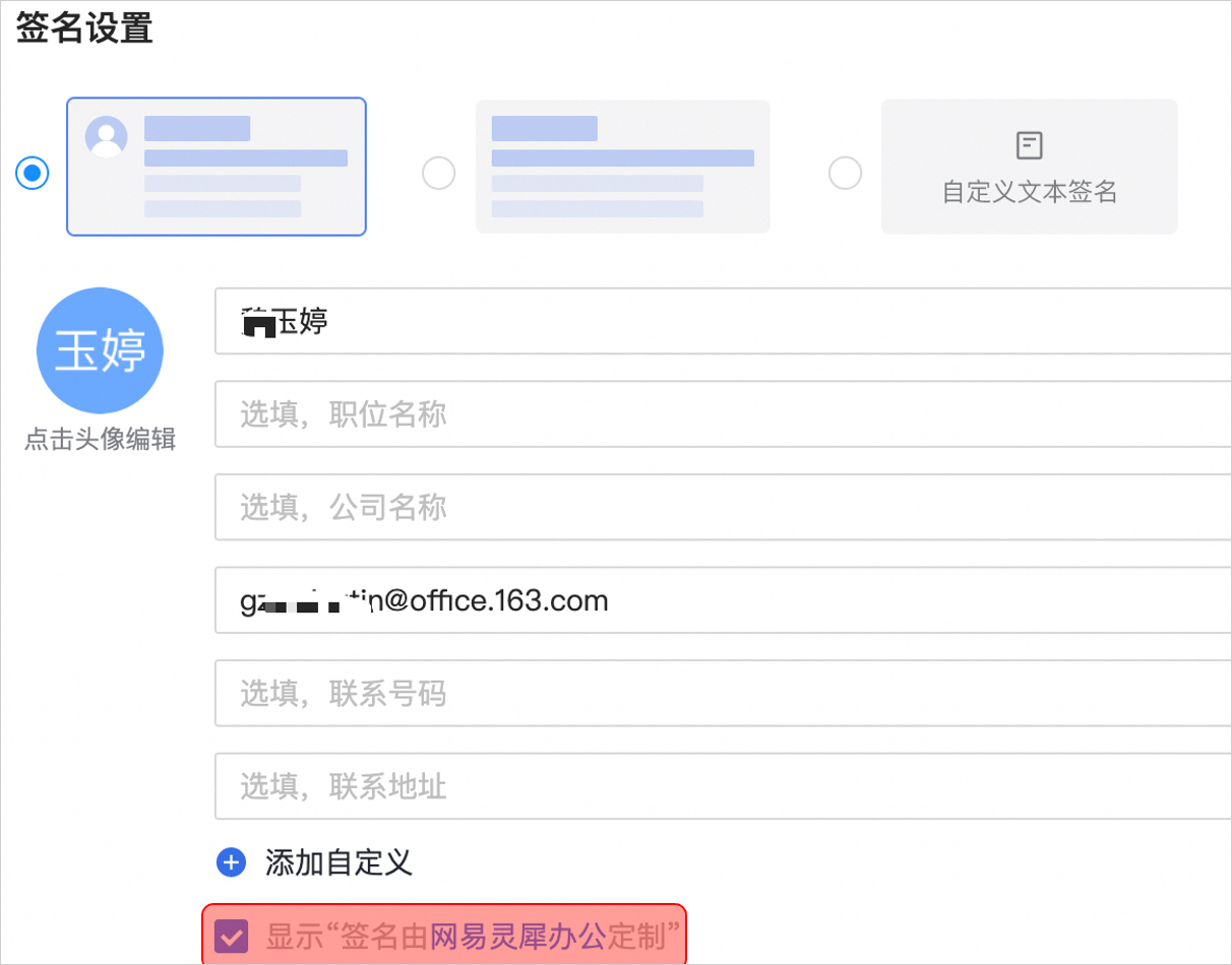 -【灵犀办公灵犀办公定制】邮件签名功能,签名数据与网易灵犀办公移动端相互同步;
