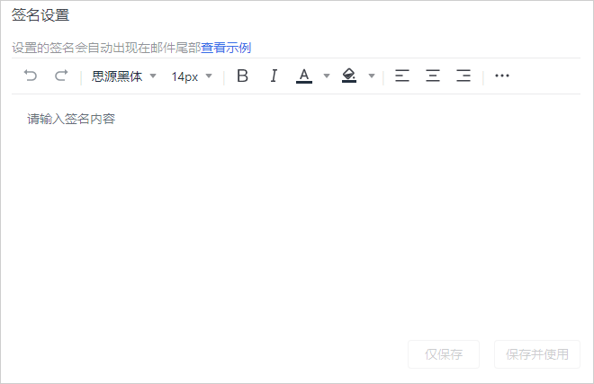-用户可在【个人中心-邮箱设置】中设置邮件签名,邮件签名数据与webmail端同步;