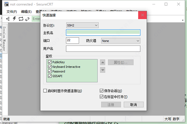 2、它支持SSH2、SSH1、Telnet、serial和Raw平台。在Windows上,支持Telnet/TLS、RLogin和TAPI。身份验证方法包括密码、公钥、X.509证书、通过GSSAPI的Kerberos v5和键盘交互。密码包括AES- ctr、AES、Twofish、Blowfish、3DES和RC4。