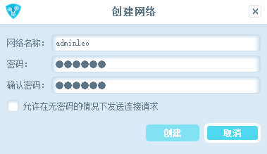 4、支持网络设置功能,直接在Radmin LAN创建新的网络,可以设置名字和密码。