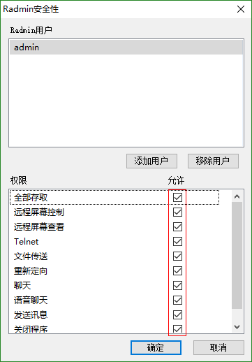 5、给设置的用户全部权限,保存并退出,配置就完成了,以上就是radmin lan软件的联机方法了。