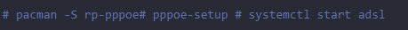 # pacman -S rp-pppoe# pppoe-setup # systemctl start adsl