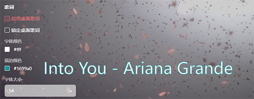 2、关于桌面歌词的设置也提供了颜色和字体大小的简单设置,也够用了。