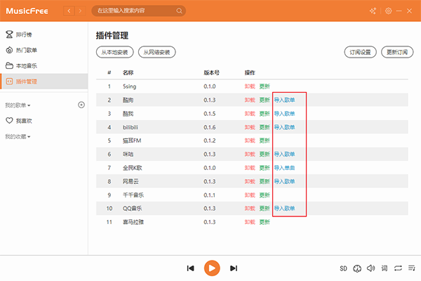 1、插件化导入:支持导入特定插件接口,让用户能够访问全网最全的音乐资源。