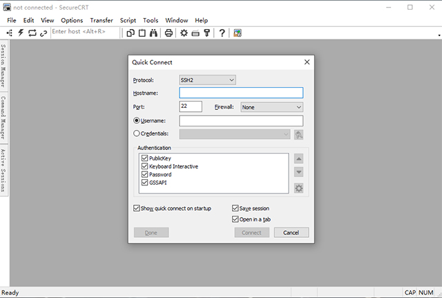 securecrt 5官方版是一款专业的远程连接终端仿真软件,简单来说就是Windows下登录UNIX或Liunx服务器主机的软件,作为Windows平台的SSH客户端,其功能已足够强大,支持 SSH2、SSH1、Telnet、Telnet/SSH、Relogin、Serial、TAPI、RAW 等协议,不过最吸引我的是,且支持标签化 SSH对话,从而可方便地管理多个SSH 连接,设置项也极为丰富。软件能从命令行中运行或从浏览器中运行,其它特点包括文本手稿、易于使用的工具条、用户的键位图编辑器、可定制的ANSI颜色等,其中的SSH协议支持DES、3DES和RC4密码和密码与RSA鉴别。使用中配置本地端口转发,涉及到本机、跳板机、目标服务器,因为本机与目标服务器不能直接ping通,所以需要配置端口转发,将本机的请求转发到目标服务器。