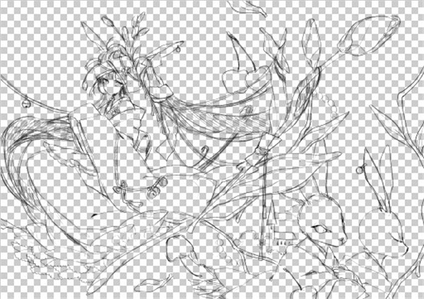 (2)白色背景部分变透明,图层剩下只有线稿的状态。