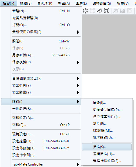 透过[档案]→[读取]→[扫描]来取得草稿。