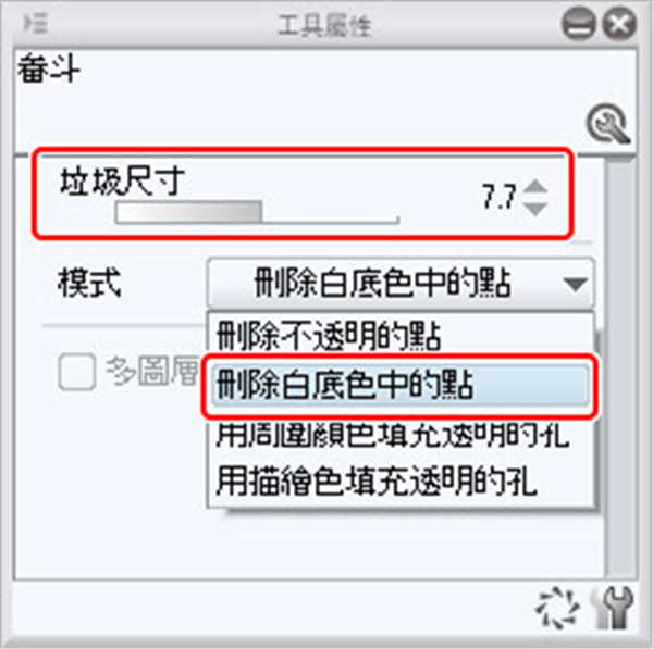 (2)在[工具属性]面板把[模式]变更成[删除白底色中的点]。