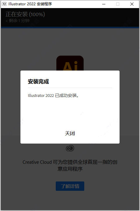 6、最后由于是集破解补丁于一体的,因此到这里即可轻松获得adobe illustrator 2022中文破解版。