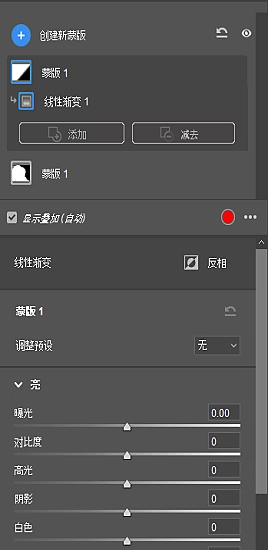 更改叠加的颜色。单击显示叠加旁边的红色单选按钮并选择所需的颜色。您也可以单击三点图标来查看一系列预设叠加选项,如黑白底颜色叠加、黑白底图像、黑底白像等。