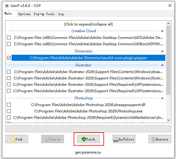 1、下载解压,得到adobe dn中文版,以及GenP.v3.6.9-CGP.rar激活文件;
