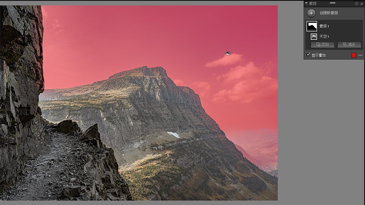 Lightroom Classic 将分析照片并自动为您选择天空。您可以将选区视为叠加,并在蒙版面板中创建蒙版。