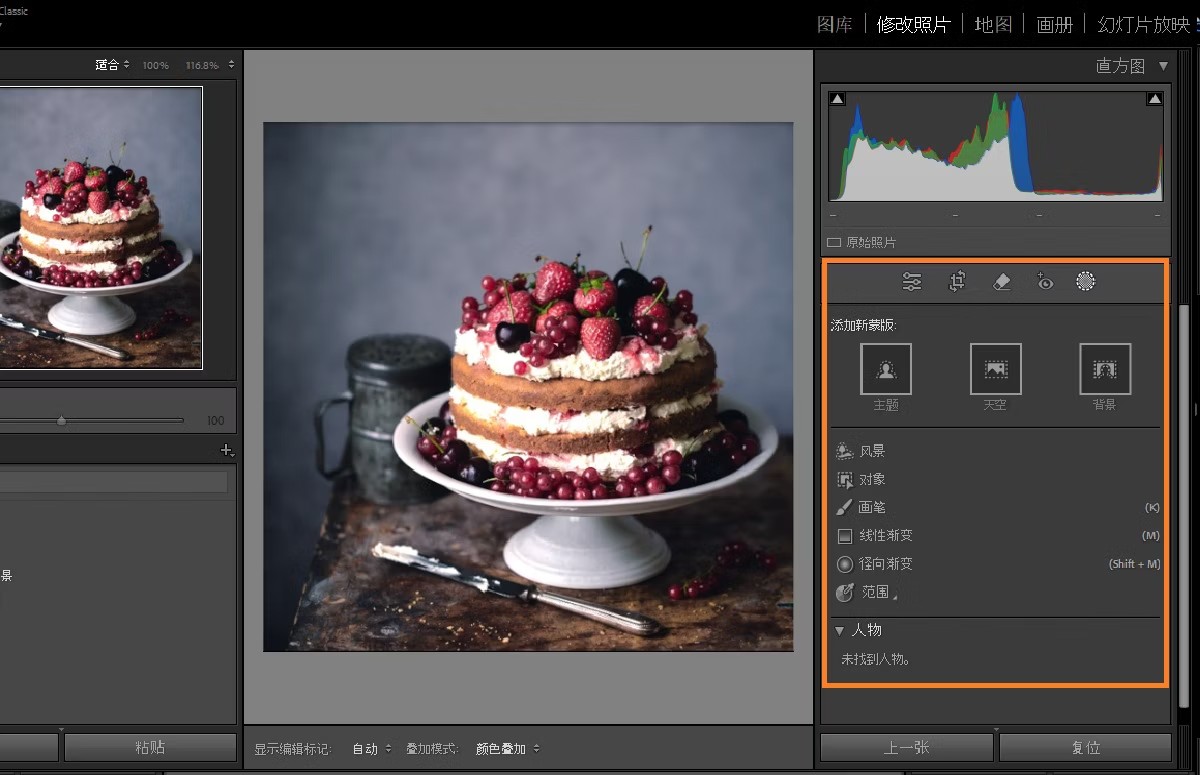 从“修改照片”模块的工具条中选择蒙版 > 风景。