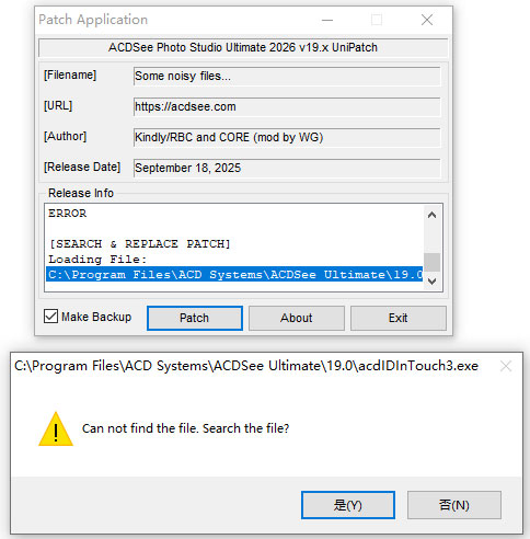 8、提示查找文件,找到【C:\Program Files\ACD Systems\ACDSee Ultimate\19.0\acdIDInTouch2.exe】即可;